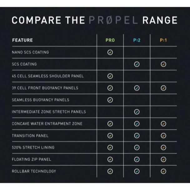 An all-round sleeveless wetsuit that provides aspiring athletes with the power to perform against the competition. Packed with features including rollbar, floating zip, SCS coating and 39 Cell buoyancy paneling, the P:1 PROPEL wetsuit is a leader in its price bracket.